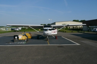 Nicht ohne Grund habe ich die letzten Flugstunden dazu genutzt, mit der D-EAKS vertraut zu werden. Die große Cessna mit dem Garmin G1000 ist ein tolles Reiseflugzeug. Natürlich steht sie ganz hinten im Hangar, so dass wir erst einmal 5 andere Flugzeuge aushallen müssen, bevor ich die Maschine an die Tankstelle schieben kann.