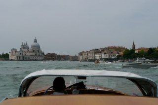 Den gemütlichen Teil unserer Reise haben wir uns nun wahrlich verdient. Mit einem exklusiven Wassertaxi, einem wunderschönen Boot in poliertem Holz, machen wir uns auf den Weg quer über die Lagune. Unser Taxifahrer ist sehr freundlich und zudem ziemlich flott unterwegs. Die salzige Luft in der Nase und den Wind in den Haaren genießen wir vom Achterdeck aus den Ausblick auf das Treiben in und um Venedig.