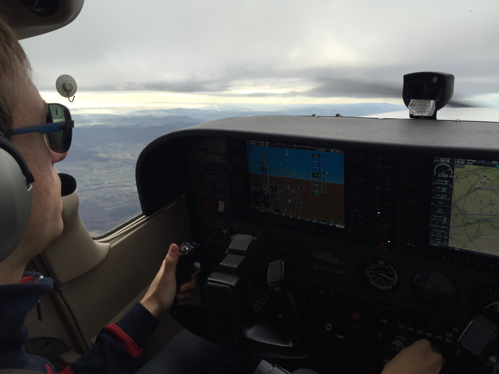 Wir erhalten den Vektor 240° und sollen auf Flugfläche (FL) 80 steigen. Für einen Sichtflieger wie mich durchaus eine spannende Sache, denn nach nur wenigen Minuten steigen wir bereits in die Wolken, die Staurohrheizung zur Sicherheit eingeschaltet.