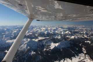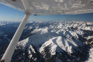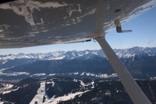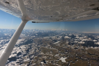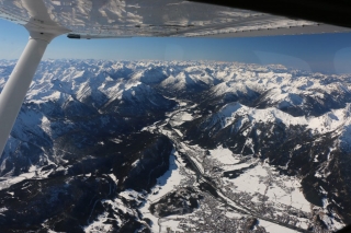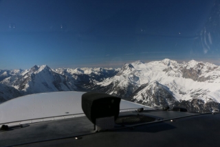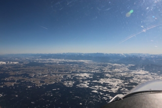 Während ich einen Vollkreis fliege, um gemütlich die Höhe abzubauen, genieße ich das traumhafte Winter-Panorama. Die Sonne strahlt kräftig aus dem satt blauen Himmel und blinzelt unter der Tragfläche hindurch zu mir ins Cockpit. Ich genieße den Moment. Koste jede Sekunde aus.
