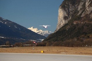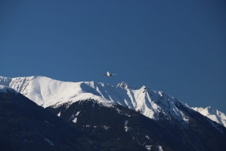 Als ich schließlich ins Inntal einfliege, erhalte ich noch einige Verkehrshinweise. Der Flughafen Innsbruck spickelt bereits hinter der massiven steilen Felswand hervor und ich bekomme sogleich die Anweisung direkt in den Gegenanflug Piste 26 einzufliegen und mich für einen kurzen Anflug bereitzuhalten.
